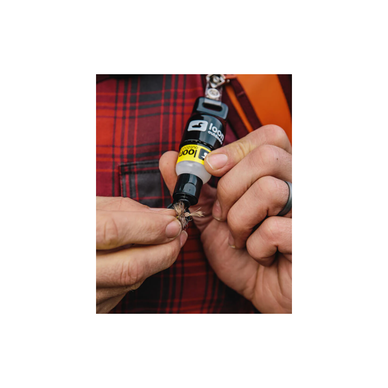 Un gel flotante que agrega un poco de brillo a las moscas. Tiene una base de silicona y no deja nada resbaladizo en la superficie, al tiempo que agrega un reflejo iridiscente que imita las alas transparentes.