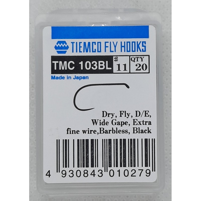 Mosca seca, D / E, Gape ancho, Alambre extra fino, Barbless, Negro.