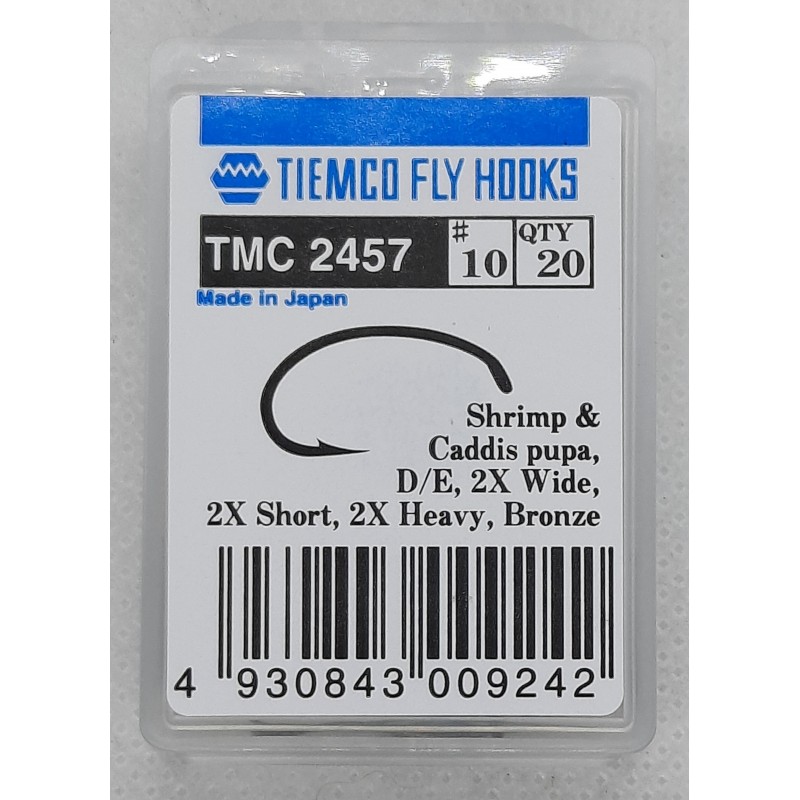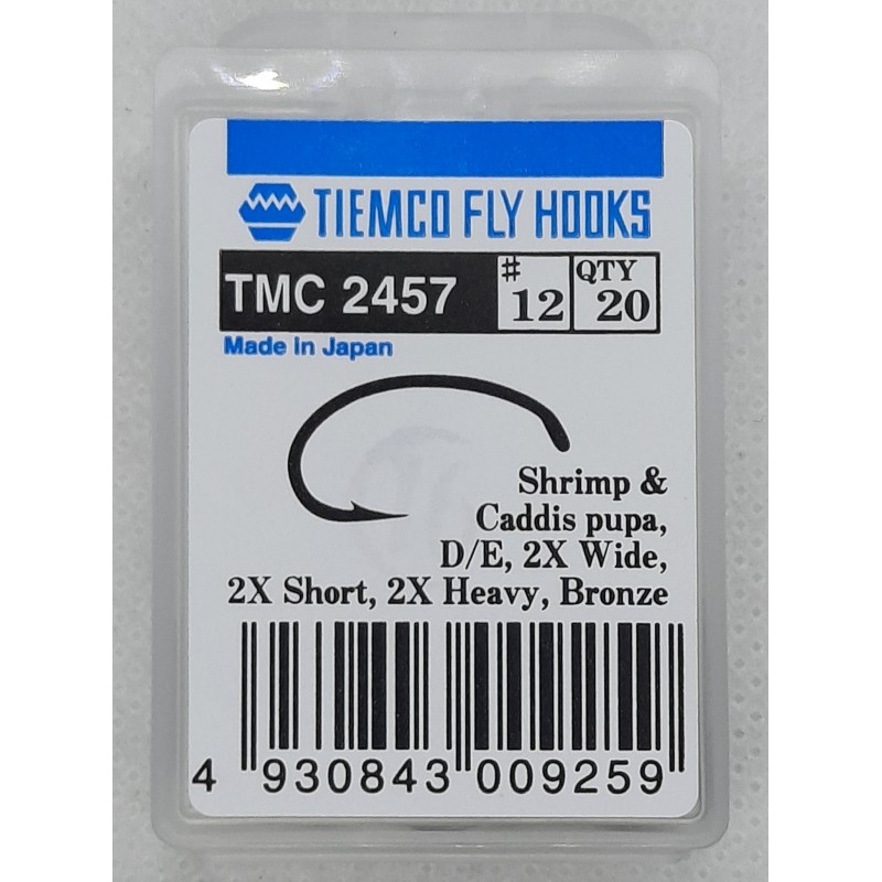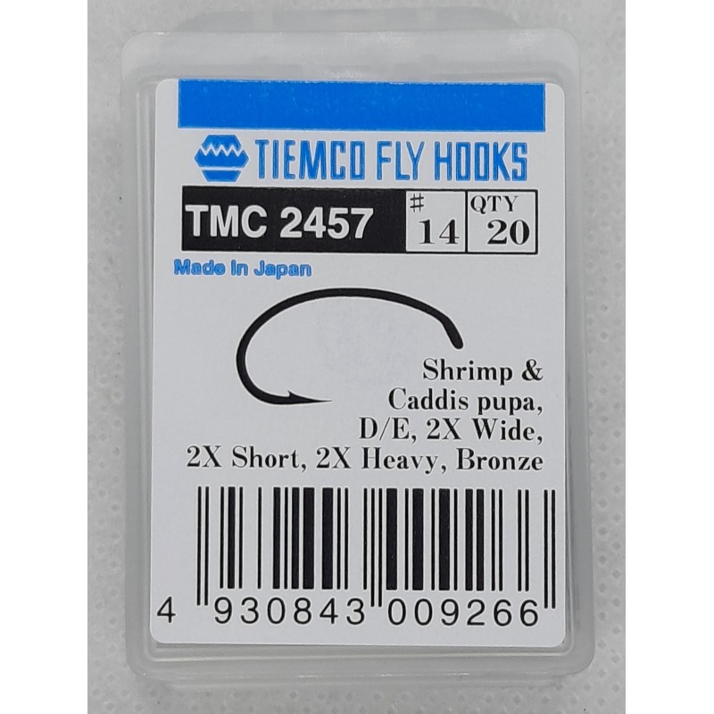 TMC ha eliminado la compensación 2487/2457. Esto se debió principalmente al problema de la inclinación de la mosca en el agua cuando se usa para una inmersión o un hackle suave, pero también tiene la ventaja de ser más fácil de atar. Como resultado de reajustar la forma general del ángulo del ojo, el rendimiento de enganche / sujeción ha mejorado. El 2487 también está disponible en acabado dorado.