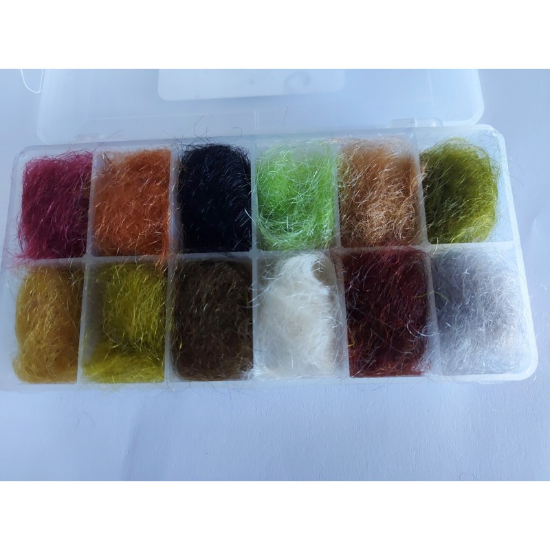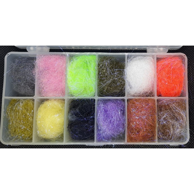 Kit surtido de doblaje UV. Resalta todas tus ninfas usando este doblaje combinado. Un 80% de fibras de Antron con un 20% de fibras potenciadoras de rayos UV.