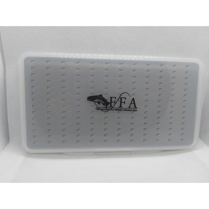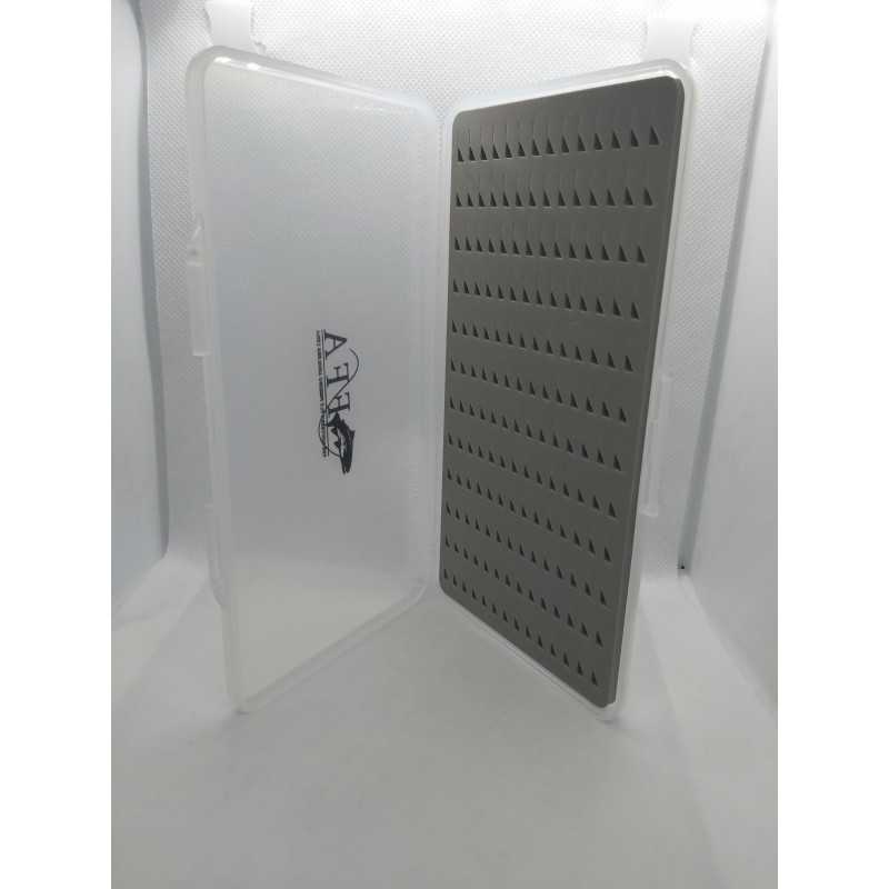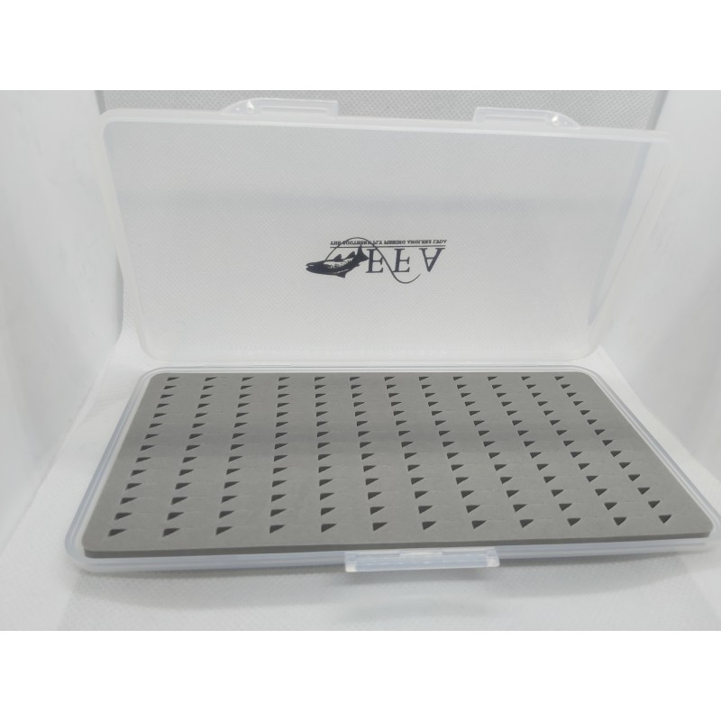 CAJA PLASTICO RESISTENTE, CIERRE HERMETICO, CAPACIDAD 168 MOSCAS, IDEAL PARA NINFAS Y PERDIGONES.