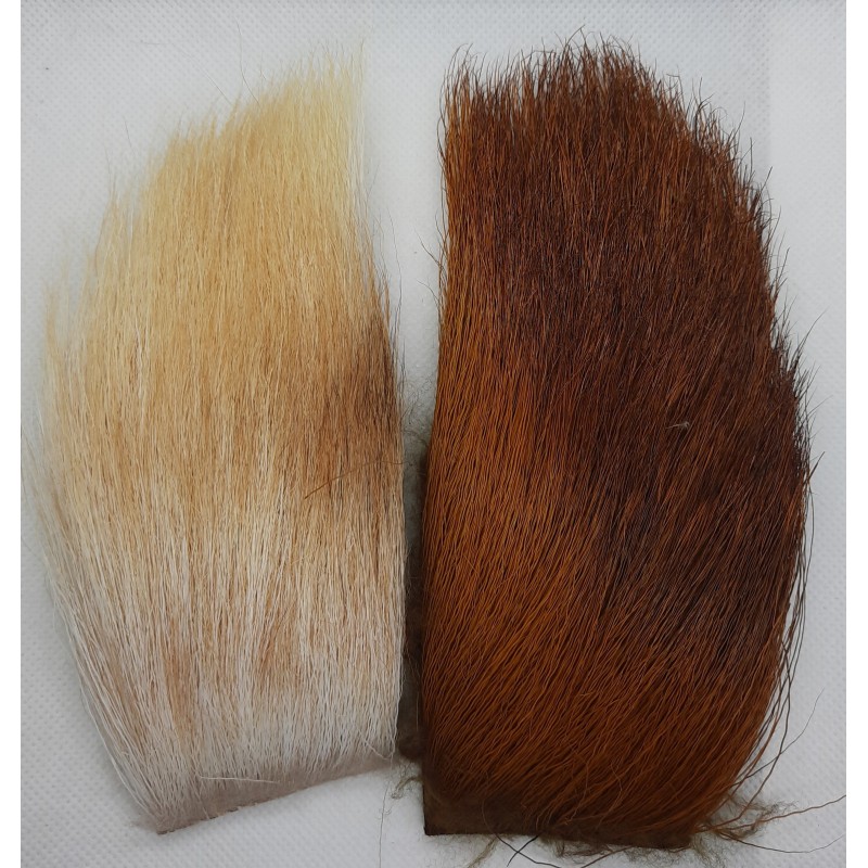 Los alces de vaca tienden a tener un cabello largo y agradable, por lo que la mayor parte de nuestro pelo proviene de los alces de vaca. El color varía de carbón a marrón a rubio con longitudes de hasta 4 ". La textura es muy gruesa. Un cabello popular para patrones de cuerpo extendido. También hace buenos cuerpos segmentados para tolvas.