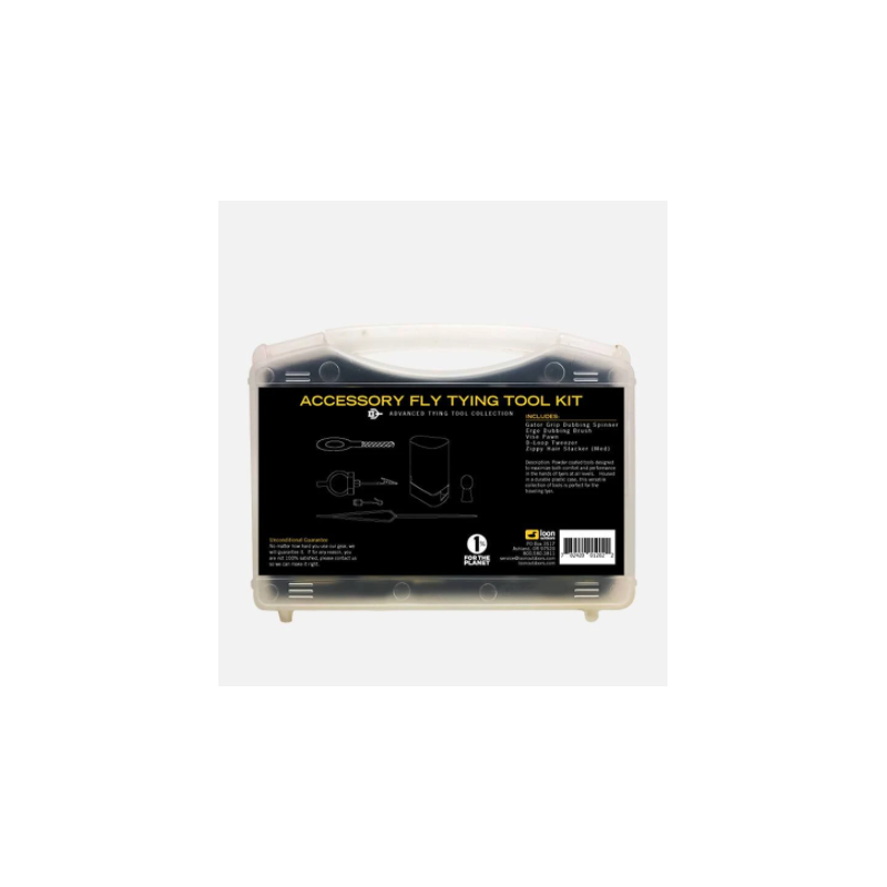 Empaquetado en un estuche de viaje resistente y con el Gator Grip Dubbing Spinner, D-Loop Pinzas, Ergo Dubbing Brush, Zippy Hair Stacker (M) y un Vise Pewn, este es un kit para cualquiera que busque reforzar su arsenal de herramientas para atar moscas. .