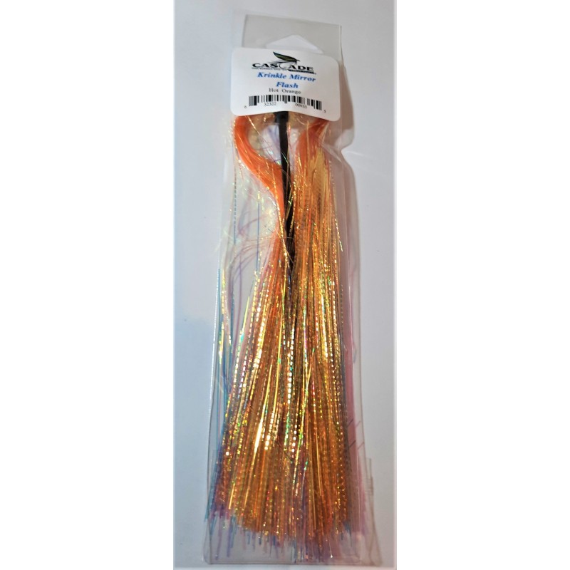 Krinkle Mirror Flash": Flash de espejo con un ligero rizado, que imita la caída de escamas. Hank de 8 pulgadas y 800 hilos. Un poco rinde mucho.