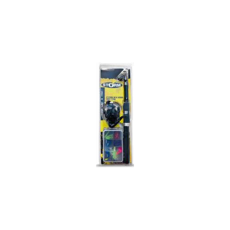 Combo de Pesca, Storm ideal para acompañar en las jornadas de pesca en ríos o lagos, su forma telescópica, permite ocupar el menor espacio, para su transporte, contiene accesorios y señuelos.