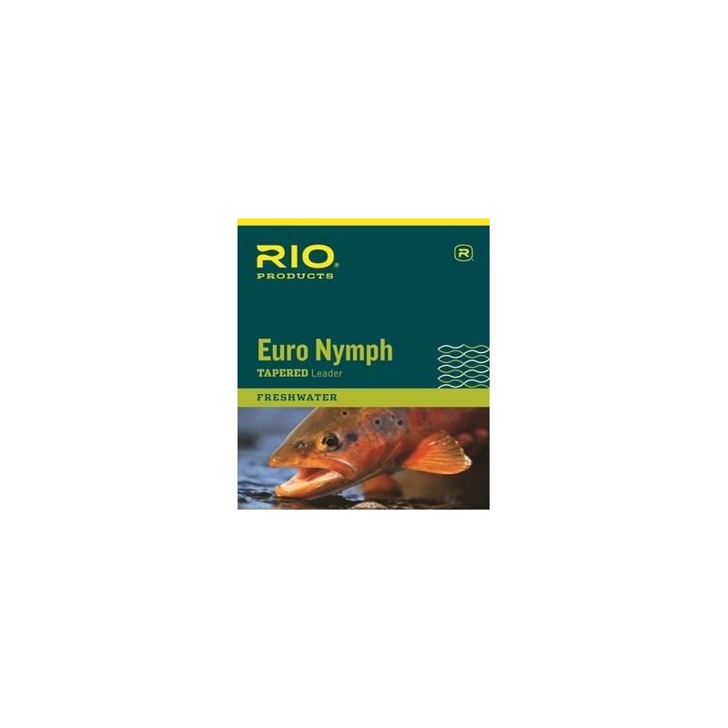 Euro Nymph Leader de RIO es un líder cónico de diseño único e ideal para las técnicas europeas de ninfa. El líder comienza con 9 'de un nylon cónico de color blanco lechoso para visibilidad, que luego se une a 22 "del material Tippet Indicador de dos tonos 2X de RIO, para una máxima visibilidad en todas las condiciones de luz y para facilitar la detección de golpes sutiles. El líder termina con un anillo tippet, lo que permite a los pescadores adjuntar su propia tippet para que coincida con el tipo de agua y las condiciones.